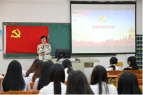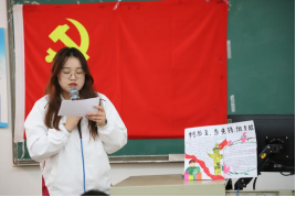 大会议第四项:学生第一党支部宣传委员梁杨清老师总结发言。