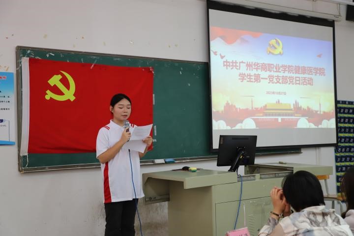 为引导和激励学生党员争做先锋,树立良好形象,进一步提升学生党员的党性修养和行为规范,增强学生党员的责任感和使命感,健康医学院学生第一党支部于2023年10月27日中午,在博学楼b303开展“树形象、当先锋、做贡献”主题党日活动。参加此次活动的老师有学生第一党支部何泓书记、宣传委员梁杨清老师以及全体学生党员。本次活动由“医心向党”学生党务办公室罗瑜同学主持。