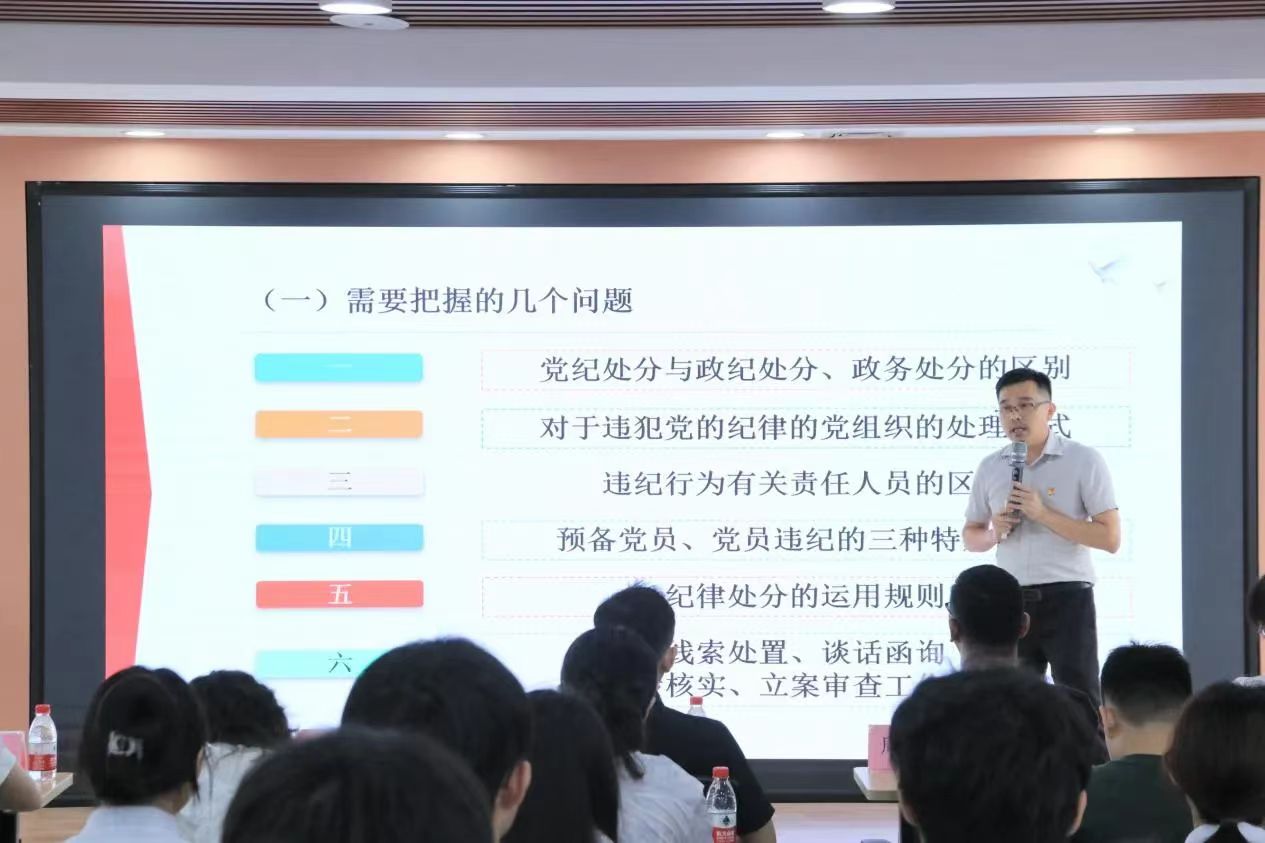 揭牌仪式后,黄泽栋副教授为在场的学院和企业党员讲授了一堂深入浅出的党纪学习教育专题党课。他详细解读了《中国共产党纪律处分条例》的最新修订背景和主要内容,引导党员们深刻理解党纪的重要性,强化了党员的纪律意识和规矩意识。