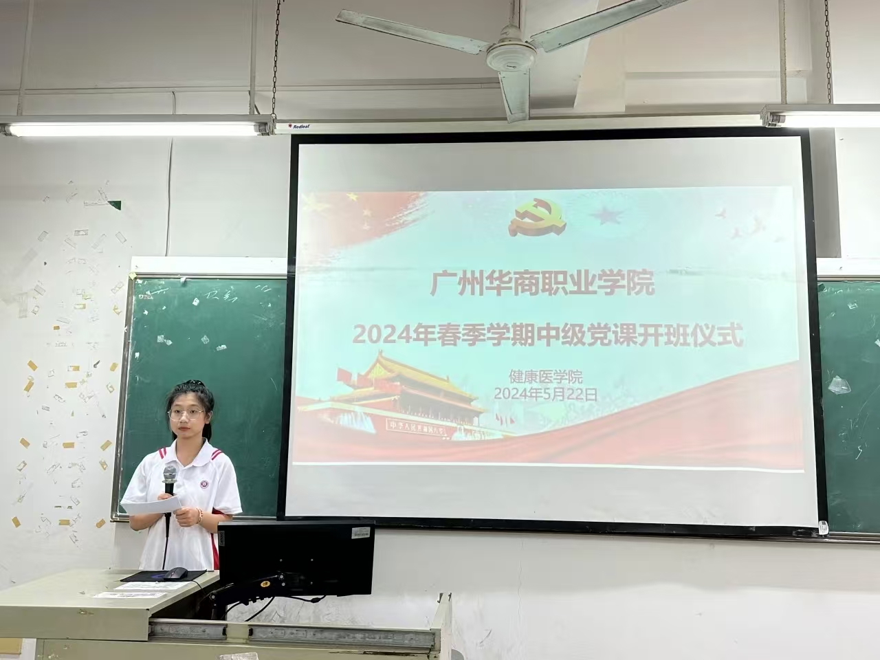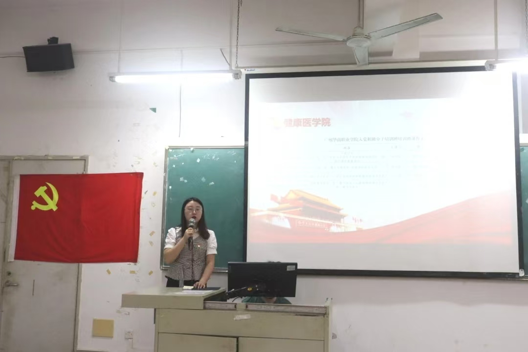 为进一步加强入党积极分子对党的认识,坚定理想信念,端正入党动机,以党员的标准严格要求自己,争取早日入党。根据《中共广州华商职业学院委员会关于党员发展培训的实施方案》,我院于2024年5月22日中午12:10在博学楼A307举行健康医学院第29期中级党课开班仪式及第一讲 。出席参加本次党课的老师有健康医学院党总支副书记黄泽栋、学生第一党支部书记何泓、学生第一党支部组织委员杨敏娟和全体中级党课学员。