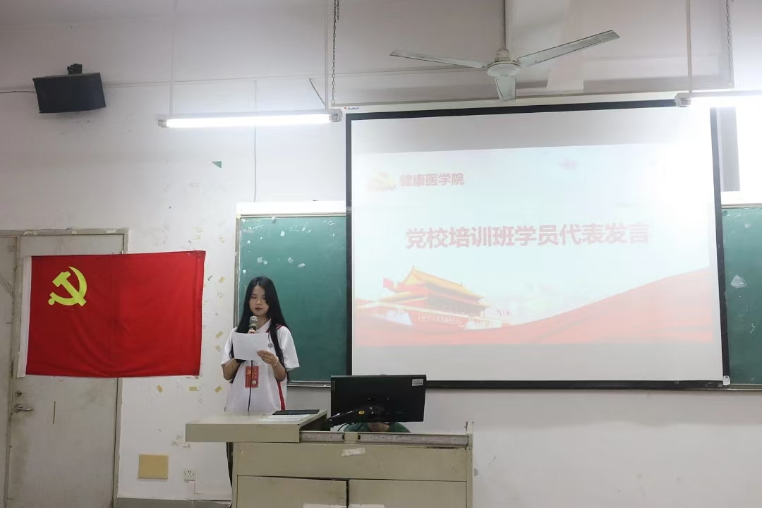 接着,本期培训班学员代表23医学美容产教融合班吴炜茵同学进行发言。新时代的青年们,要心系国家,肩负使命,做爱国新青年;不弃理想,为梦追逐,做强国新青年!以奋斗刷新青春的意涵,以不一般的站位书写不一般的作为。