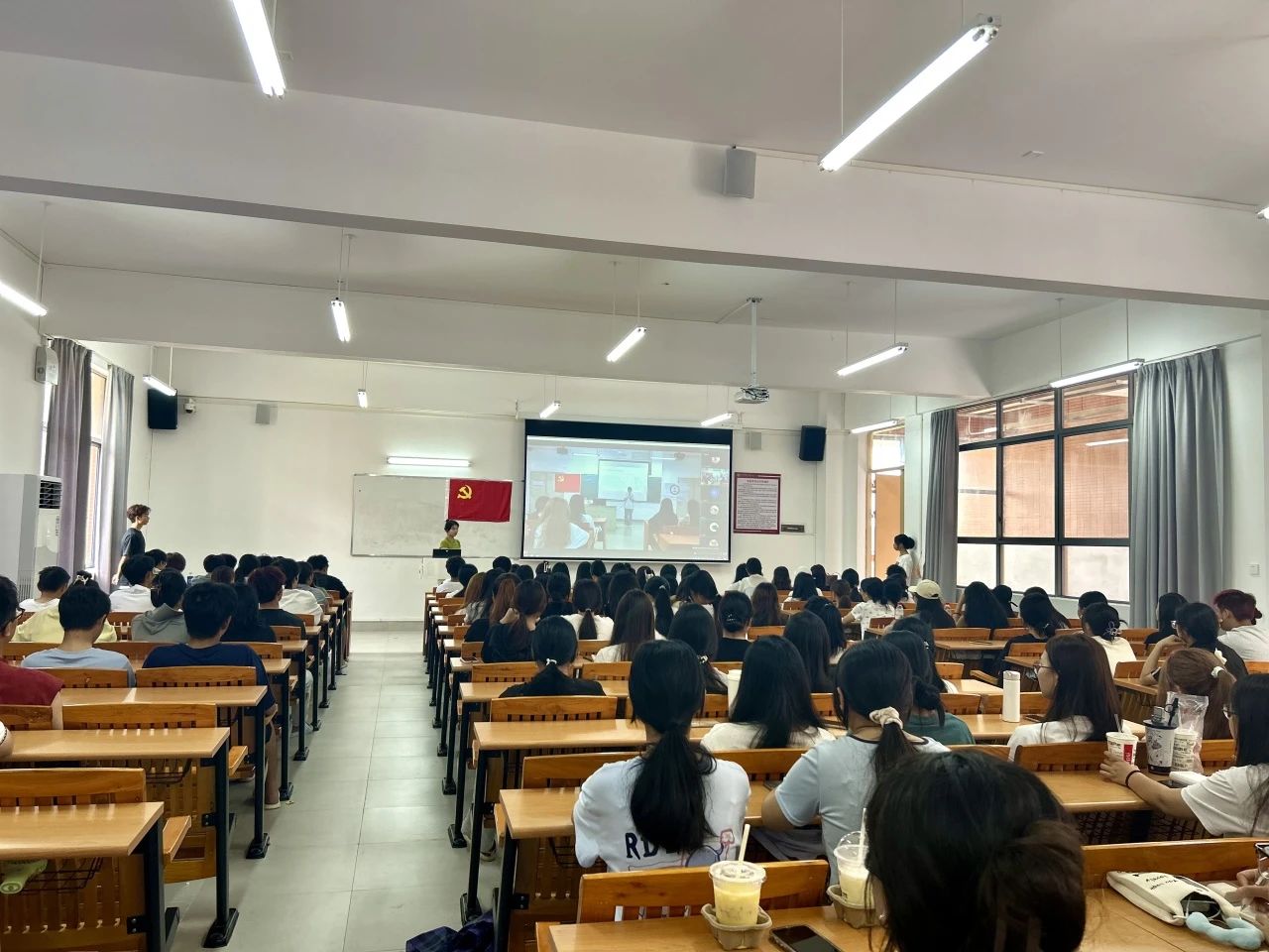为了教育引导学生坚定理想信念,不断提高党性修养,我院于2024 年9月25 日中午在广州和江门双校区12个课室通过腾讯会议直播同时召开秋季学期初级党课第一讲,1600余名学员线下参加,本次党课由健康医学院学生第二党支部书记赵巧鸿主讲。