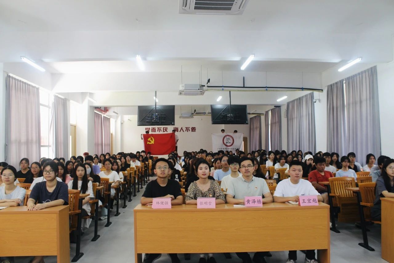 为进一步端正同学们的入党动机,增强党性修养,明确入党初心,健康医学院于2024 年9月27日中午在广州和江门双校区12个课室通过腾讯会议直播同时召开秋季学期初级党课第三讲,主会场设在江门校区2号楼104,江门校区其他教室和广州校区设置分会场。1600余名学员线下参加,本次党课由健康医学院党总支副书记黄泽栋副教授主讲。