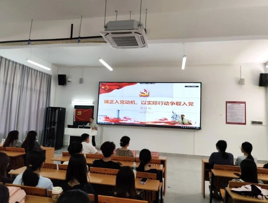 黄泽栋副书记主要从什么是正确的入党动机、为什么要端正入党动机、怎样端正入党动机三方面阐述作为递交入党申请书的我们,如何坚定理想信念,端正入党动机,加强自身的党性锤炼和党性修养。
