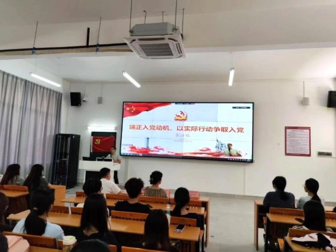 健康医学院党总支黄泽栋副书记主要从什么是正确的入党动机、为什么要端正入党动机、怎样端正入党动机三方面阐述作为递交入党申请书的我们,如何坚定理想信念,端正入党动机,加强自身的党性锤炼和党性修养。