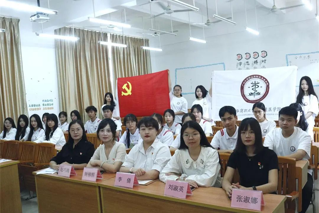 健康医学院学生第二党支部书记赵巧鸿老师带领学生党员学习大会精神