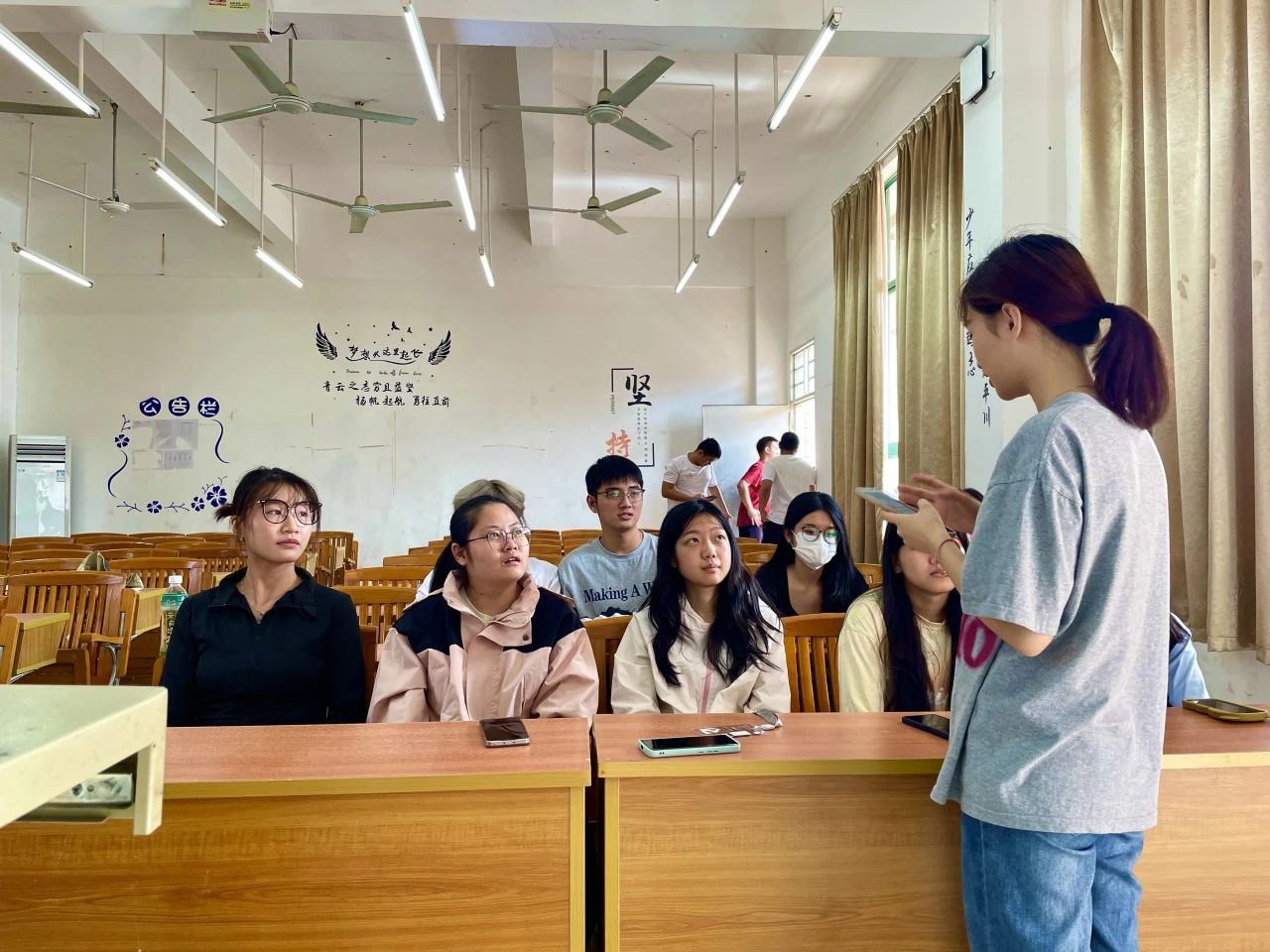 组织部部长对干事们的培训分为三部分:主持礼仪培训、活动策划书培训、主持稿撰写培训。培训提升了干事们的工作能力,对自身发展有了明确的目标。