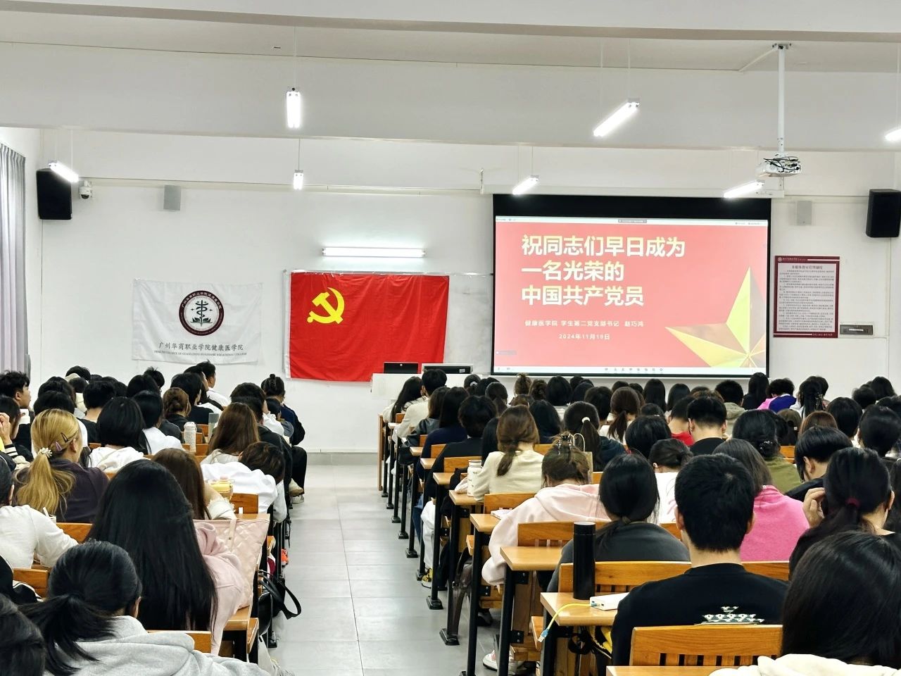 为进一步加强入党积极分子对党的认识,坚定理想信念,端正入党动机,以党员的标准严格要求自己,争取早日入党。根据《中共广州华商职业学院委员会关于党员发展培训的实施方案》,我院于2024年11月15日、11月18日、11月19日在广州和江门双校区举行健康医学院第30期中级党课培训班。