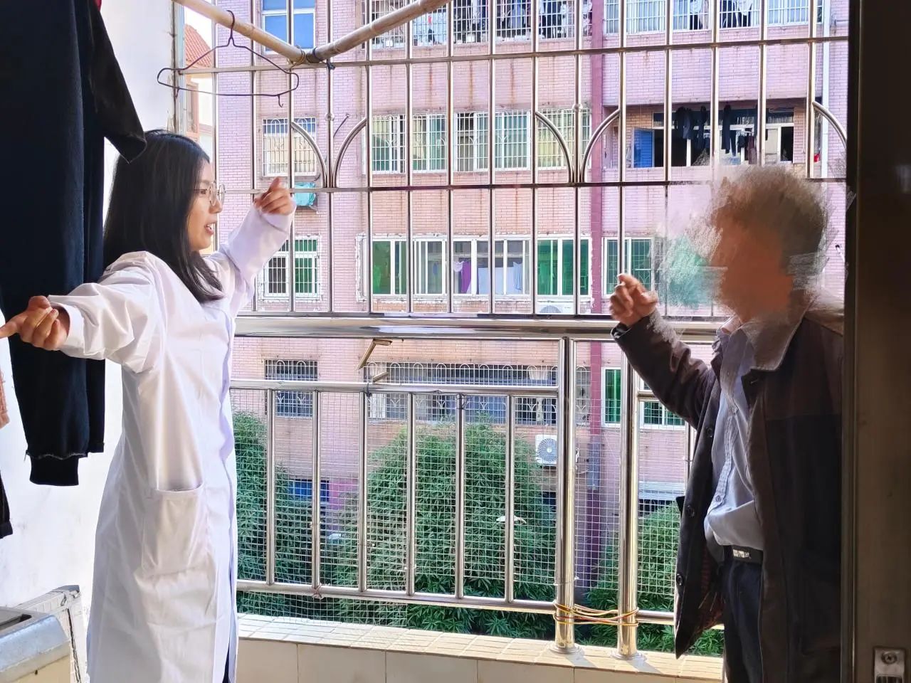 签约仪式后,我院学生第二党支部与乐众社会工作服务中心党支部共同开展了社区入户探访志愿服务活动。社工带领志愿者走进社区居民家中,为他们提供专业的健康咨询、康复指导等服务。志愿者们细致评估了老人们的身体状况,制定了个性化的护理计划,并进行了专业的康复指导。此外,志愿者们还向居民普及了健康知识,增强了他们的健康意识。