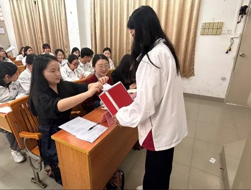 现场工作人员回收表决票,并进行现场统计。本次大会发出选票5张,实际收回选票5张,实际有效票数5张。在场的正式党员全票一致通过李金锳等6位同志接收为中共预备党员,由学生第一党支部组织委员杨敏娟向大会宣读决议书。