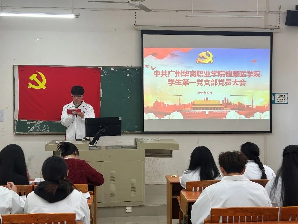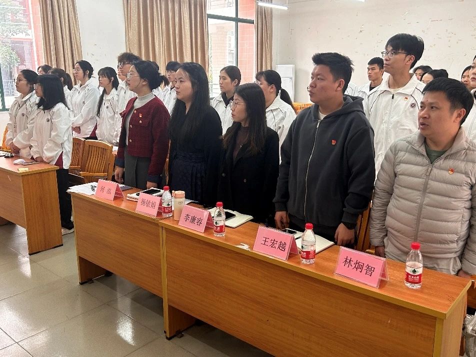 根据《党章》和《中国共产党发展党员工作细则》的有关规定,健康医学院学生第一党支部于2024年12月6日上午10:20在博学楼B202召开党员大会,会议讨论了是否接收李金瑛等6名同志为中共预备党员的事宜。莅临此次大会的领导老师有健康医学院学生第一党支部书记何泓老师、组织委员杨敏娟老师、宣传委员林炯智老师、辅导员李康容老师和王宏越老师。本次会议由我院“医心向党”学生党务办公室徐凯同学主持。