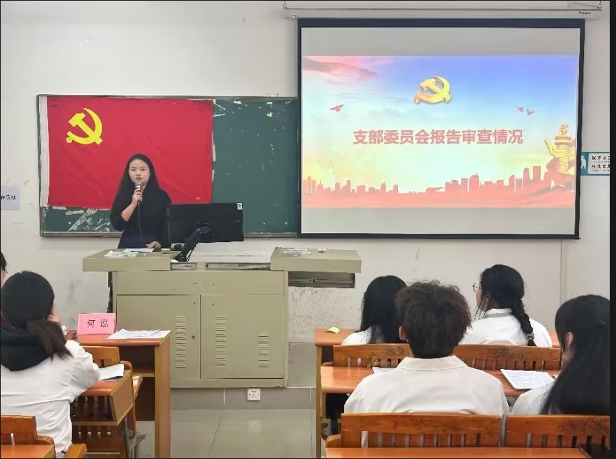 学生第一党支部组织委员杨敏娟老师向大会报告支委会对李金瑛等6名发展对象的政治审查情况。