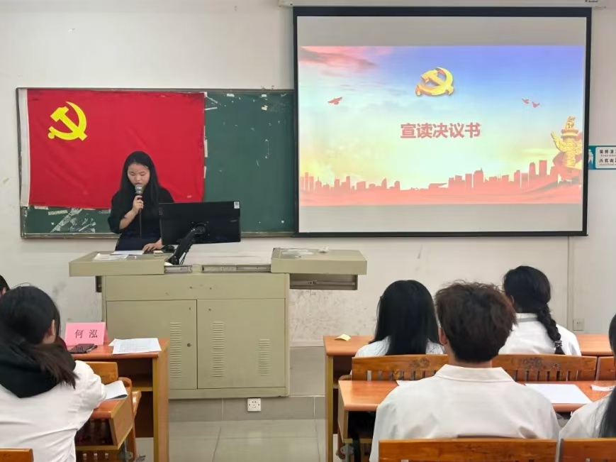 学生第一党支部书记何泓同志为此次接收预备党员大会作总结发言。她表示:“作为党员,我们的责任是肩负起为人民服务的重任。我们必须通过持续的学习与实践,不断提升自我,以保持党的先进性与纯洁性。她祝贺李金瑛等6名同志从今天起成为预备党员。希望各位党员同志以更高的标准要求自己,牢记党的使命,坚定理想信念,不忘初心,继续前进,积极投身于服务群众的实际工作中,用实际行动践行党的宗旨,不断提升为群众办实事的能力,为实现中华民族伟大复兴的中国梦贡献力量。”