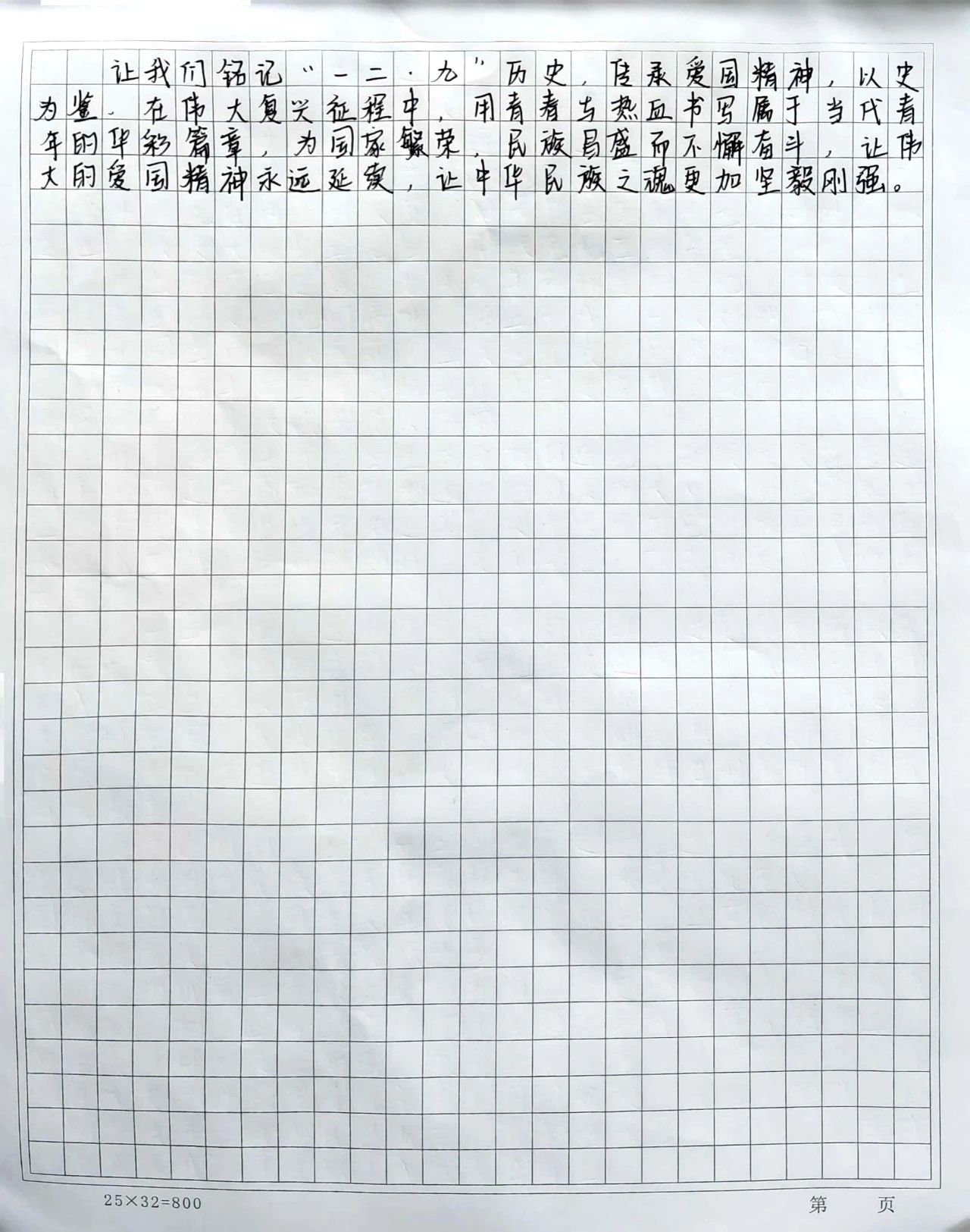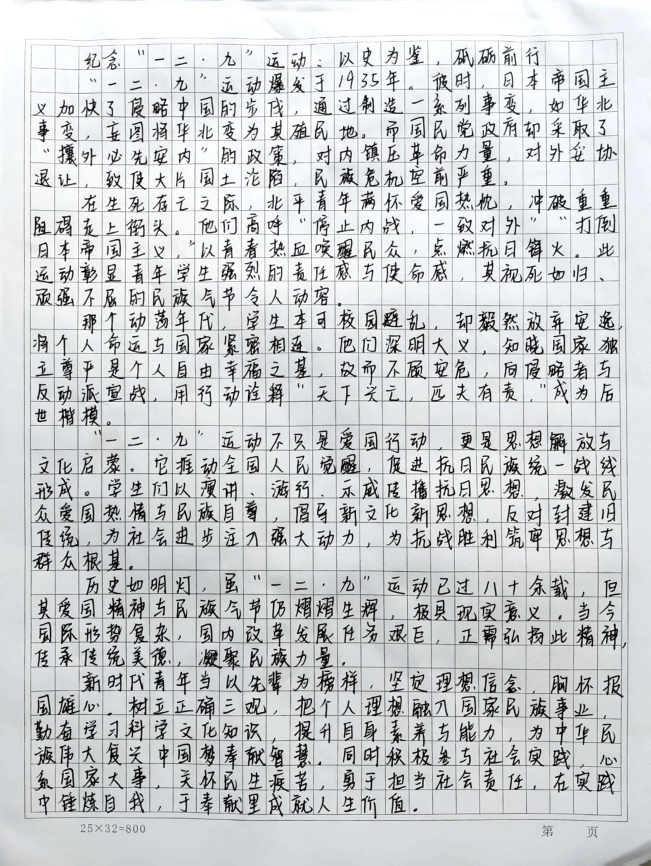 作为新时代青年大学生,我深刻感受到自己的责任和使命。一二·九运动告诉我们,青年不仅是国家的未来,更是社会变革的重要力量。今天的我们虽然生活在和平年代,但依然要牢记历史,以更强的责任感和使命感投身学习和实践,将爱国主义精神融入日常生活和未来发展中。