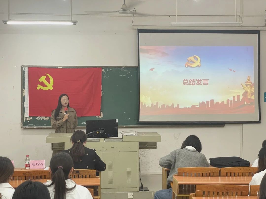学生第二党支部书记赵巧鸿同志为此次党员大会作总结发言。她着重强调党员需紧密联系党支部,积极响应号召。全力配合样板党支部的申请工作,助力支部全方位优化。