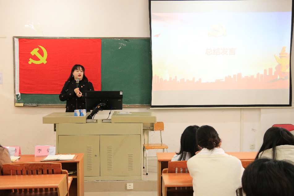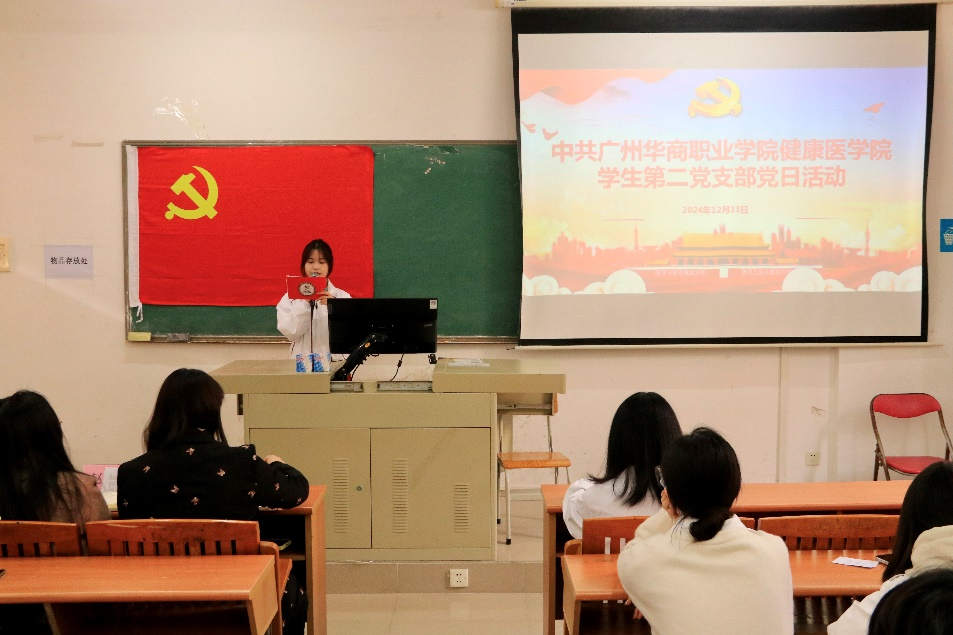 健康医学院学生第二党支部宣传委员李倩老师总结发言。2024年12月13日是第11个南京大屠杀死难者国家公祭日,无论时间过去多久,作为中国公民和中国共产党党员,我们必须深刻铭记历史,勿忘国耻。李倩老师着重强调历史是一个国家、一个民族的宝贵财富,我们要传承先烈精神,不忘初心、牢记使命。我们要以史为鉴,面向未来,积极投身于实现中华民族伟大复兴的伟大事业中,为建设一个持久和平、共同繁荣的世界贡献力量。