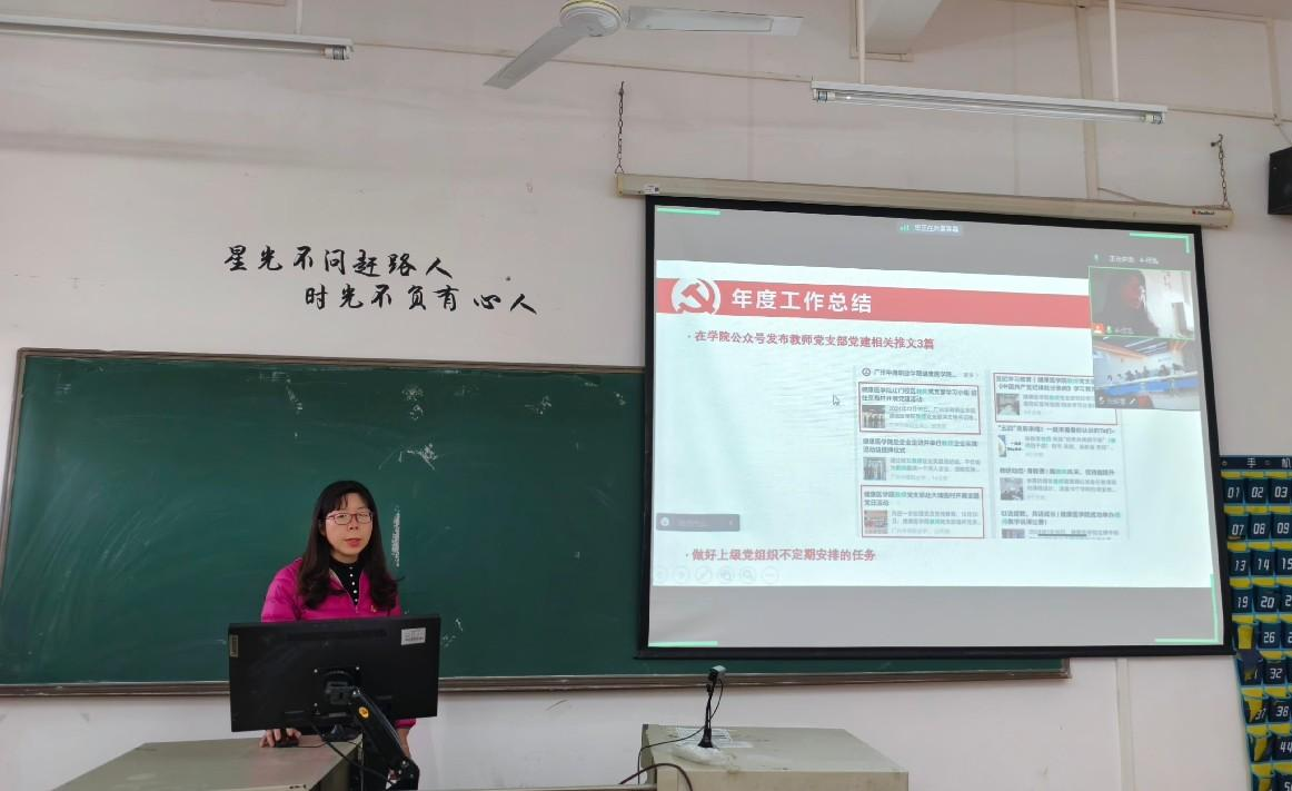 学生第二党支部书记赵巧鸿同志从各项活动开展、专题学习、“三会一课”落实、党员志愿服务、红联共建情况等几个方面回顾了2024年度学生第二党支部的活动。学生第二党支部以提升组织力为重点,强化政治功能,通过实施“党建+团建”“党建+志愿服务”等模式,有效促进了党建工作与学院各项工作的融合。此外,党支部还积极开展线上线下相结合的党建活动,拓宽了党建工作覆盖面,增强了党建工作的实效性。