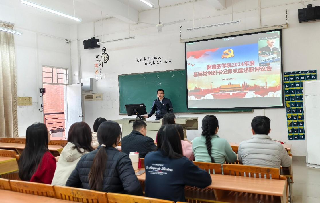 为加强基层党组织的建设,提高党建工作的质量和水平,2025年1月15日,健康医学院在博B506召开了2024年度基层党组织书记抓党建述职评议会。学院全体党务干部出席,评议会由党总支副书记黄泽栋主持。