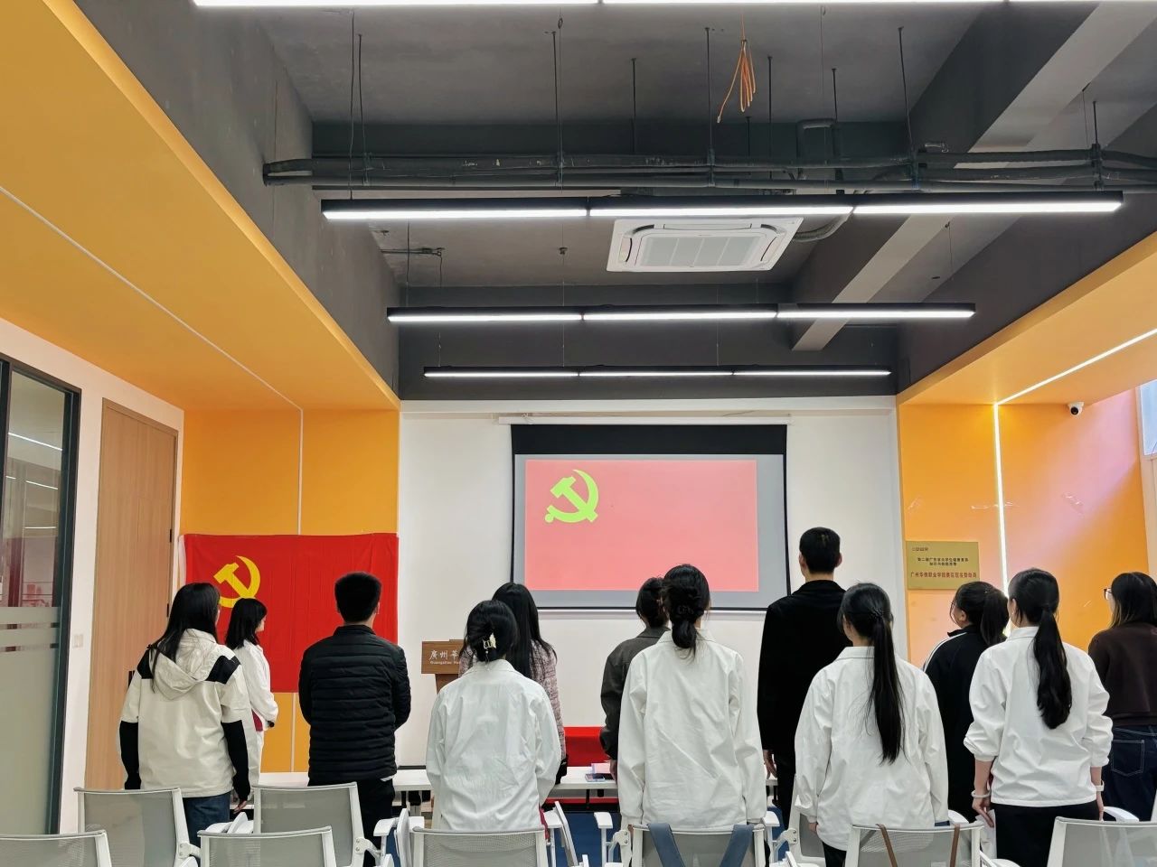 全体党员在领誓人的带领下举起右臂共同宣誓,重温入党誓词,再一次用铮铮誓言诠释入党初心。