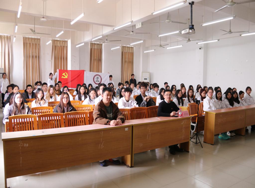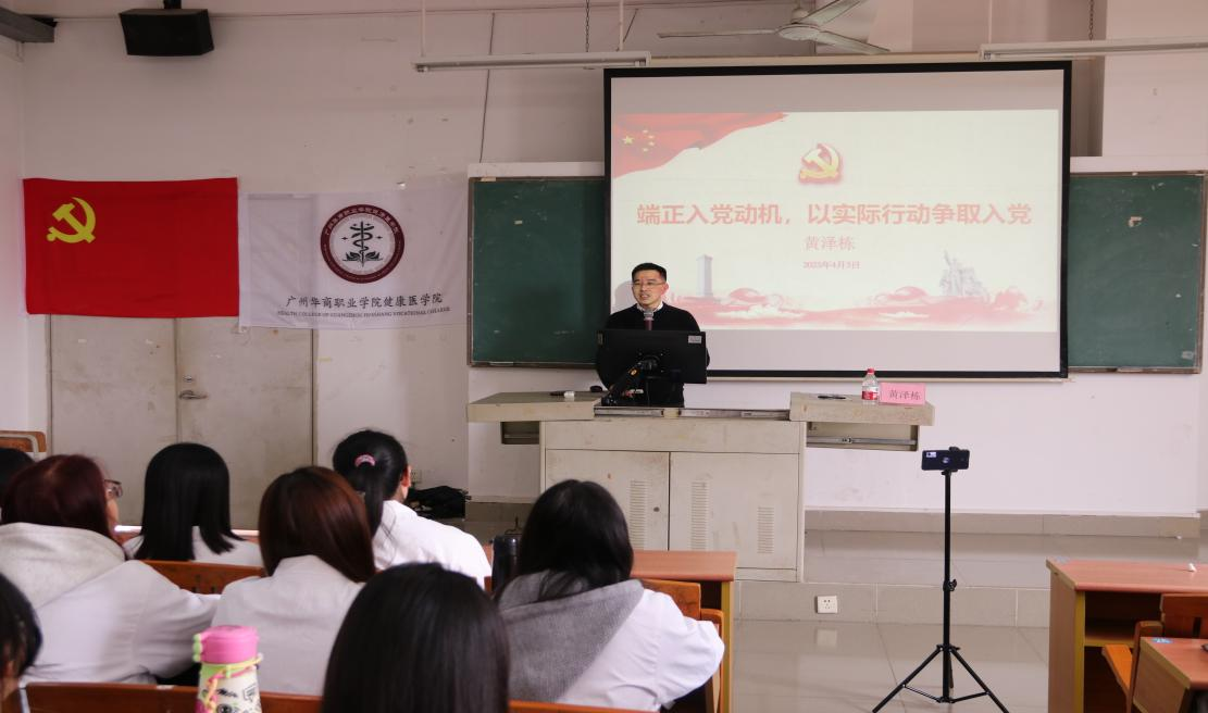 为了引导学生们坚定理想信念,端正入党动机,健康医学院于2025年4月2日12:20召开2025年春季学期初级党课第二讲,江门校区学员通过直播同时进行。本次党课由健康医学院党总支黄泽栋副书记主讲。