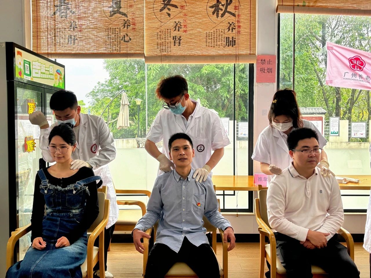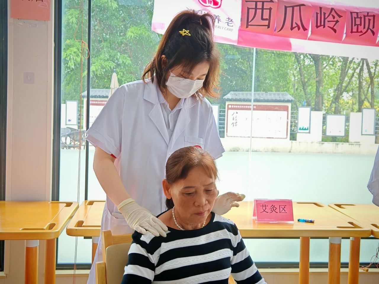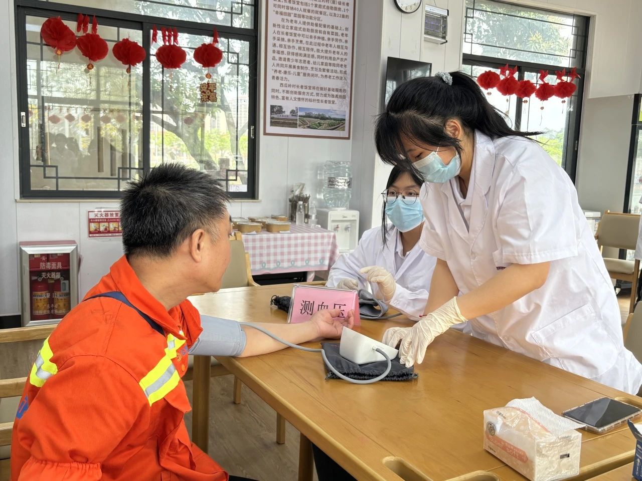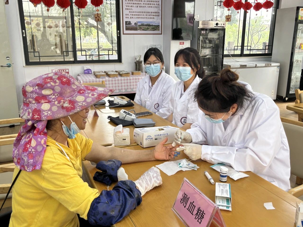 健康服务现场,健康医学院医心健康服务队和22中药学2班的志愿者们迅速投入工作,他们使用精准的血压、血糖测量仪,认真细致地为每一位前来的居民免费测量血压、血糖。同时,志愿者们还根据居民的身体状况,开展了推拿、艾灸等中医特色服务。