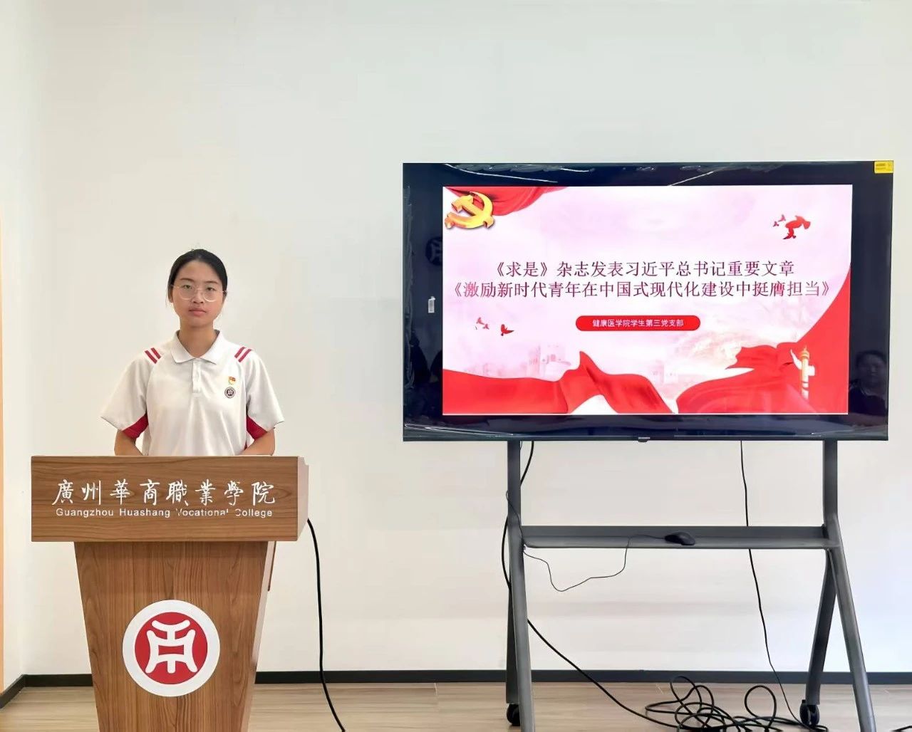 学生党员代表朱晓诗同学强调青年一代的理想、本领和担当对国家和民族的重要性,回顾了不同时期青年党员在革命、建设和新时代中的奋斗事迹,呼吁学生党员筑牢信仰根基、练就过硬本领、勇于担当作为,将个人所学与国家需求紧密结合,在数字经济、科技创新和乡村振兴等领域贡献青春力量,传承并创新践行五四精神,为实现中华民族伟大复兴贡献力量。