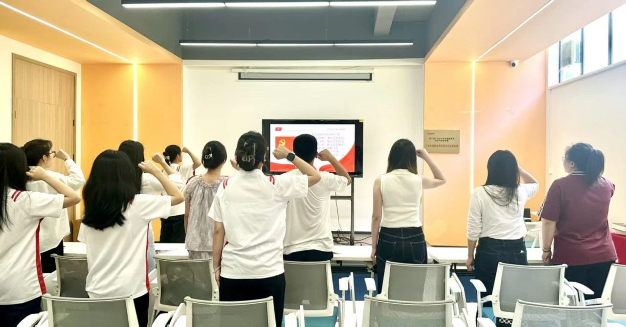 当激昂的旋律落下,全体党员神情肃穆,紧握右拳重温入党誓词,那声声誓言如洪钟般振聋发聩。