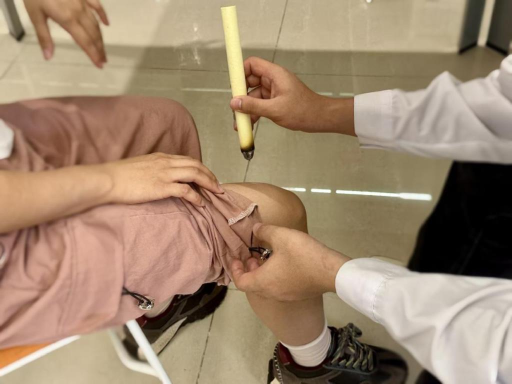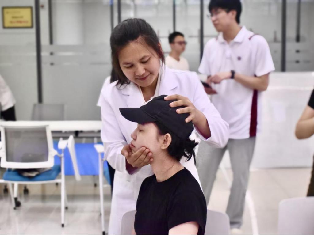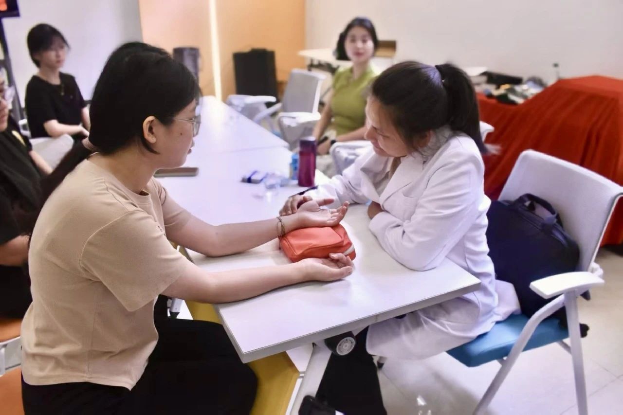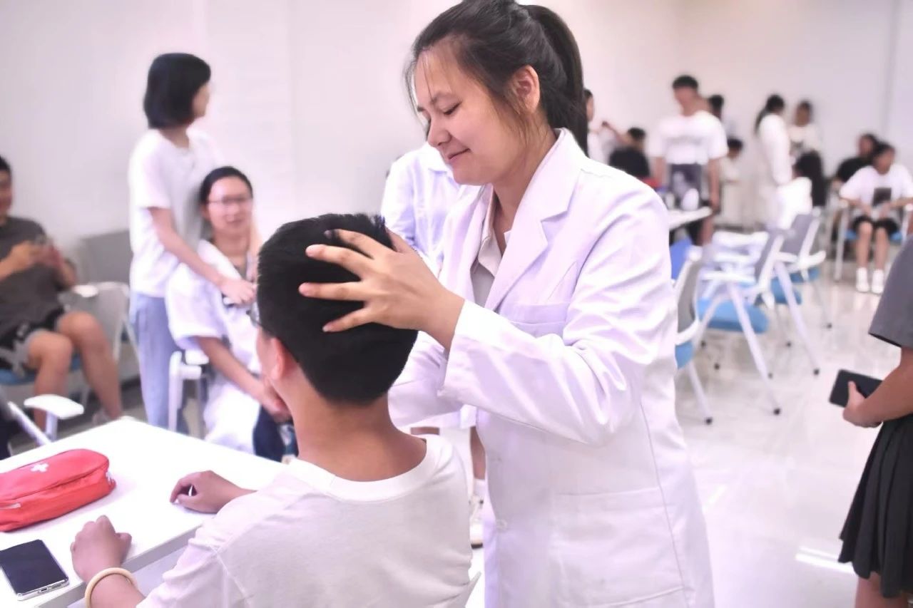 软组织康复技术培训班的老师携手学员为参与的师生提供把脉和手诊服务,能快速、精准诊断体质情况,并对症制定个人的体质调理方法;还提供针灸和刮痧服务,适应症状广泛,涵盖近视眼、颈椎病、脚痛、失眠、痛经等多种常见症状。