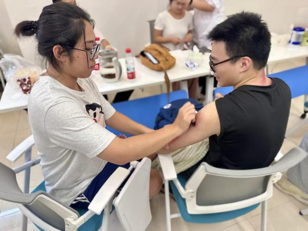 活动现场氛围热烈非凡,专业人员依据每位师生的身体状况,精准施为,开展艾灸、刮痧、针灸等调理项目。体验人员在调理结束后反馈良好,均称身体舒适感明显提升。