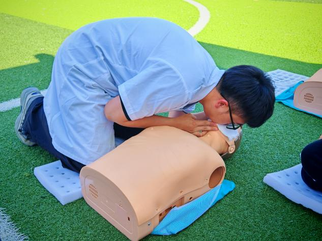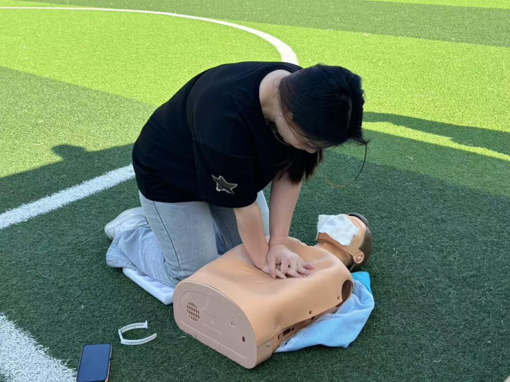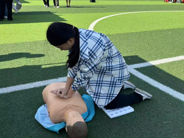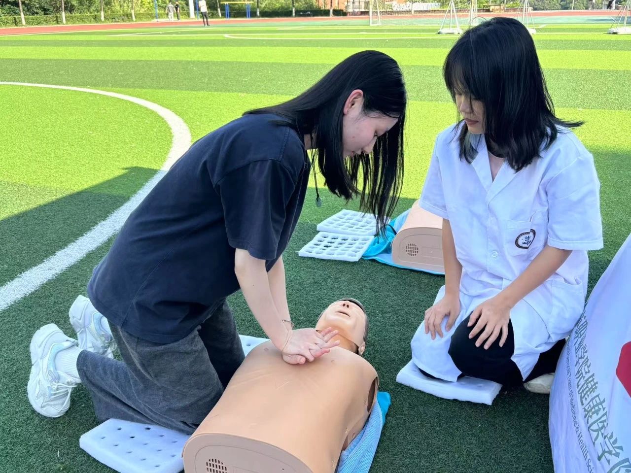 在体验环节中,同学们按照指导认真操作,互相观察并纠正错误,确保每个动作都符合标准。欢声笑语与专注神情交织在一起,形成了一幅动人的画面。通过这种互动式学习不仅增强记忆,还提高同学们在紧急情况下的应对能力。