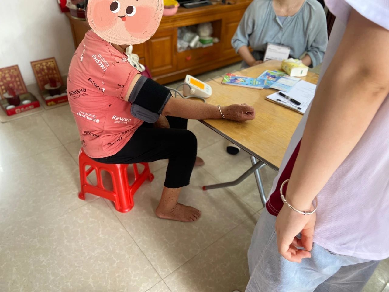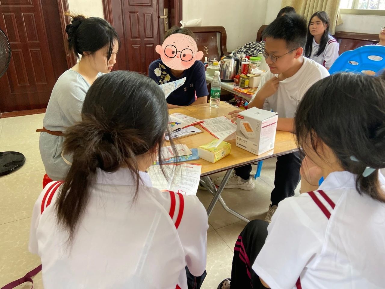 考虑到邓同学家中有老人,队员们出行前带上血压计。为老人测量血压,与此同时,队员们还耐心地叮嘱老人日常的饮食和生活习惯,让这份关怀不仅停留在学业上,更传递到生活的每一个细节中。