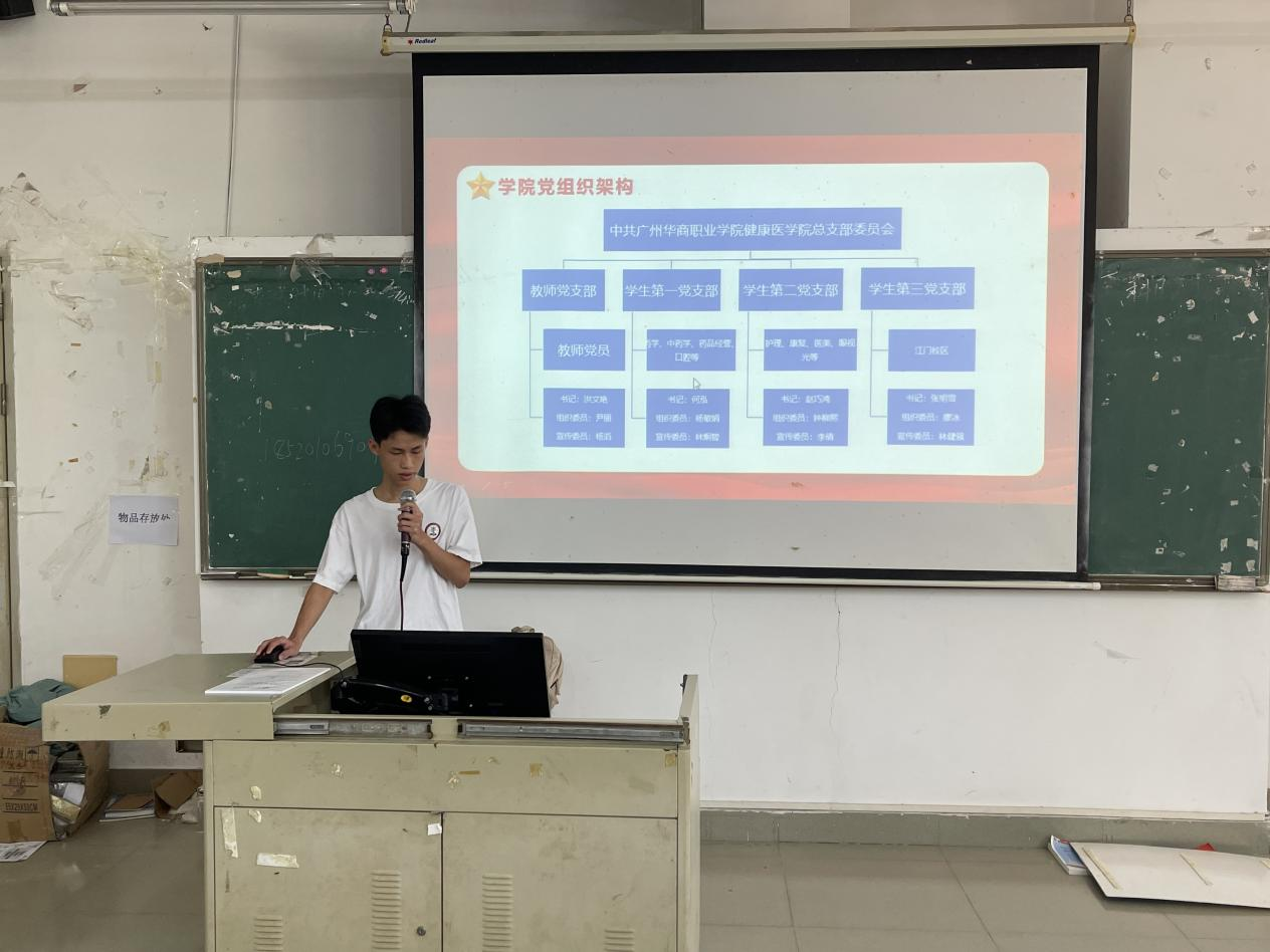 讲座伊始,工作人员阐述了健康医学院党组织架构与职能,方便2025级新生全面了解学生党务办公室各部门的工作内容。