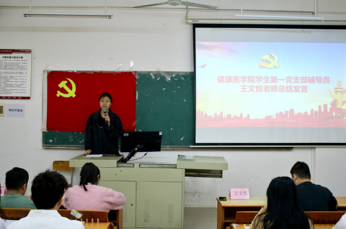 王文悦老师作总结发言。她鼓励大家要“深植历史思维,传承红色基因”,她说:“你们是新时代的见证者,也是未来的开创者。”因此,要将对党的忠诚转化为服务人民健康的具体行动,努力成长为德才兼备的医学人才,为“健康中国”建设贡献青春力量。