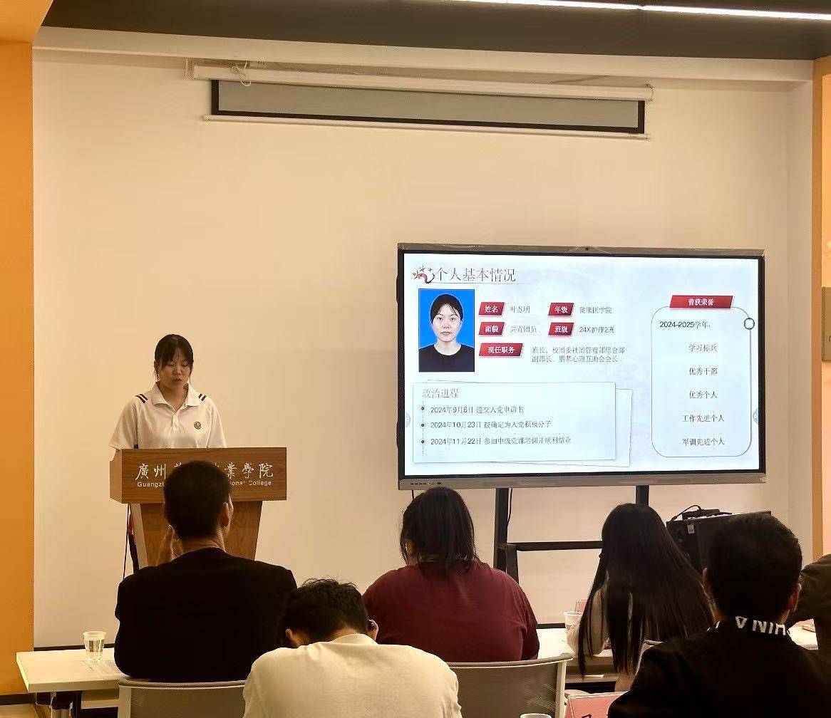 支部严格按照程序组织入党积极分子进行PPT汇报。会上,24名入党积极分子按序上台,借助精心打磨的PPT,在3分钟内,全面展示个人情况,涵盖入党动机、对党的深刻认知、学习实践成果、自身优缺点以及未来规划。