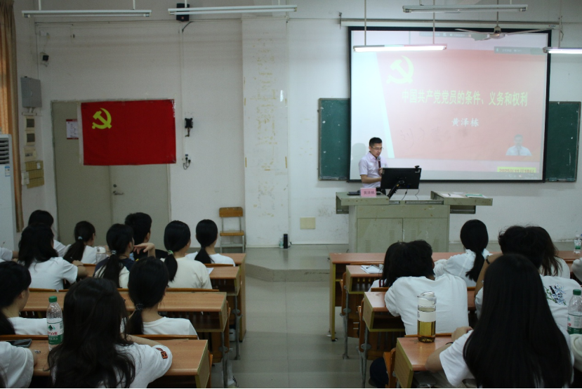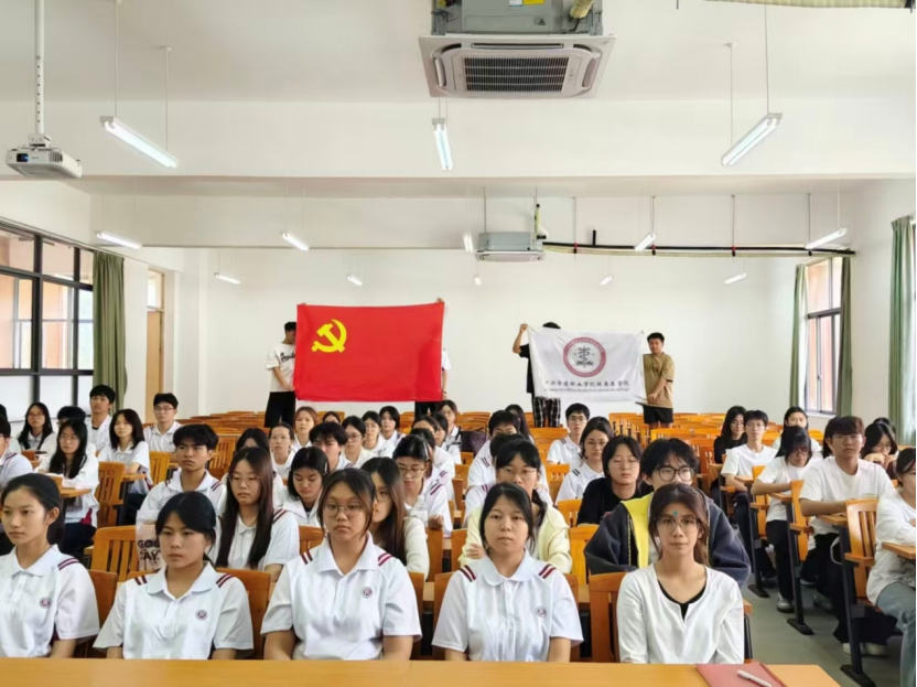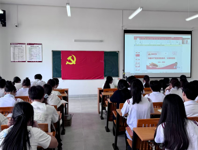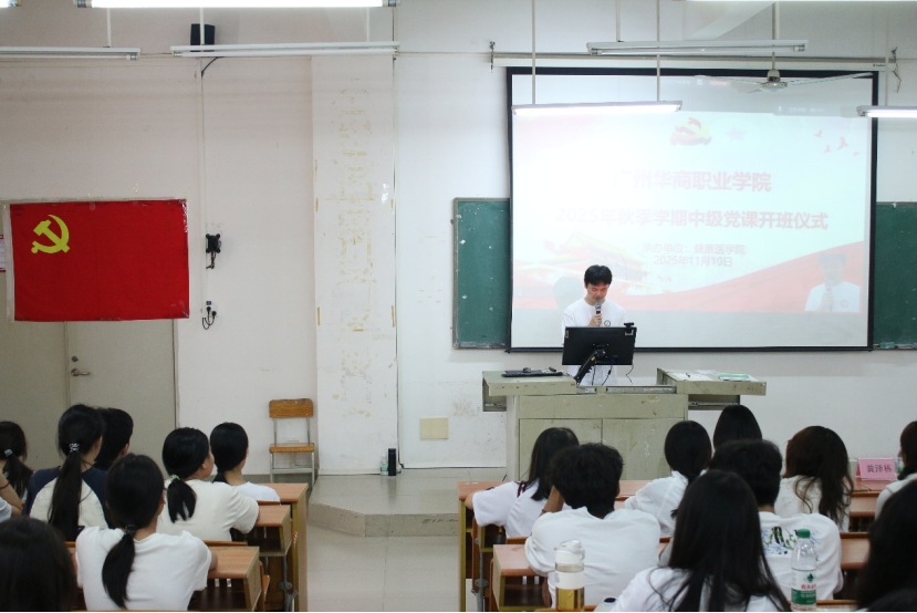为进一步加强入党积极分子对党的认识,坚定理想信念,端正入党动机,以党员的标准严格要求自己,争取早日入党,根据《中共广州华商职业学院委员会关于党员发展培训的实施方案》,我院于2025年11月10日中午12:30在博学楼C501举行健康医学院第32期中级党课开班仪式暨第一讲。出席本次活动的有健康医学院党总支副书记黄泽栋、党总支组织员王宏越、学生第二党支部书记赵巧鸿及全体中级党课学员。