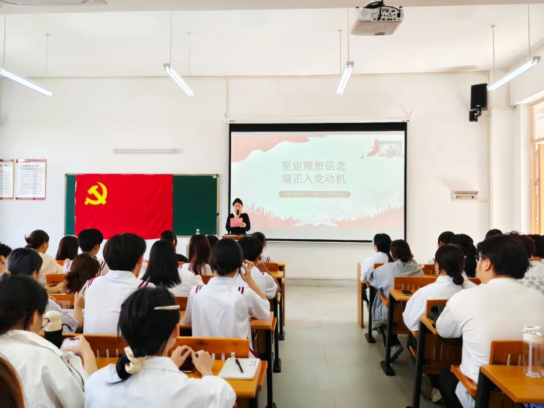 加强入党积极分子对党的深刻认识,坚定其理想信念,促其端正动机,强化其责任和使命感。健康医学院于2025年11月12日12:45在文科楼311召开2025年秋季学期中级党课第二讲,广州校区学员通过直播同时进行。本次党课由健康医学院学生第三党支部张明雪书记主讲。