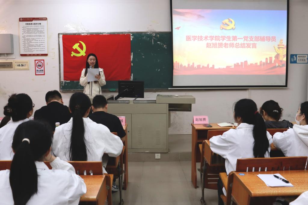 为赓续红色血脉,大力弘扬雷锋精神,筑牢党员信仰之基,医学技术学院学生第一党支部于2026年3月12日10:30在博C202开展“学雷锋办实事,不忘初心担使命”主题党日活动。莅临本次活动的老师有医学技术学院第一党支部宣传委员王宏越老师、党总支宣传委员李康容老师、辅导员王文悦、赵旭赟、许世龙、杨安祺老师以及全体学生党员。本次活动由王丽婉同学主持。