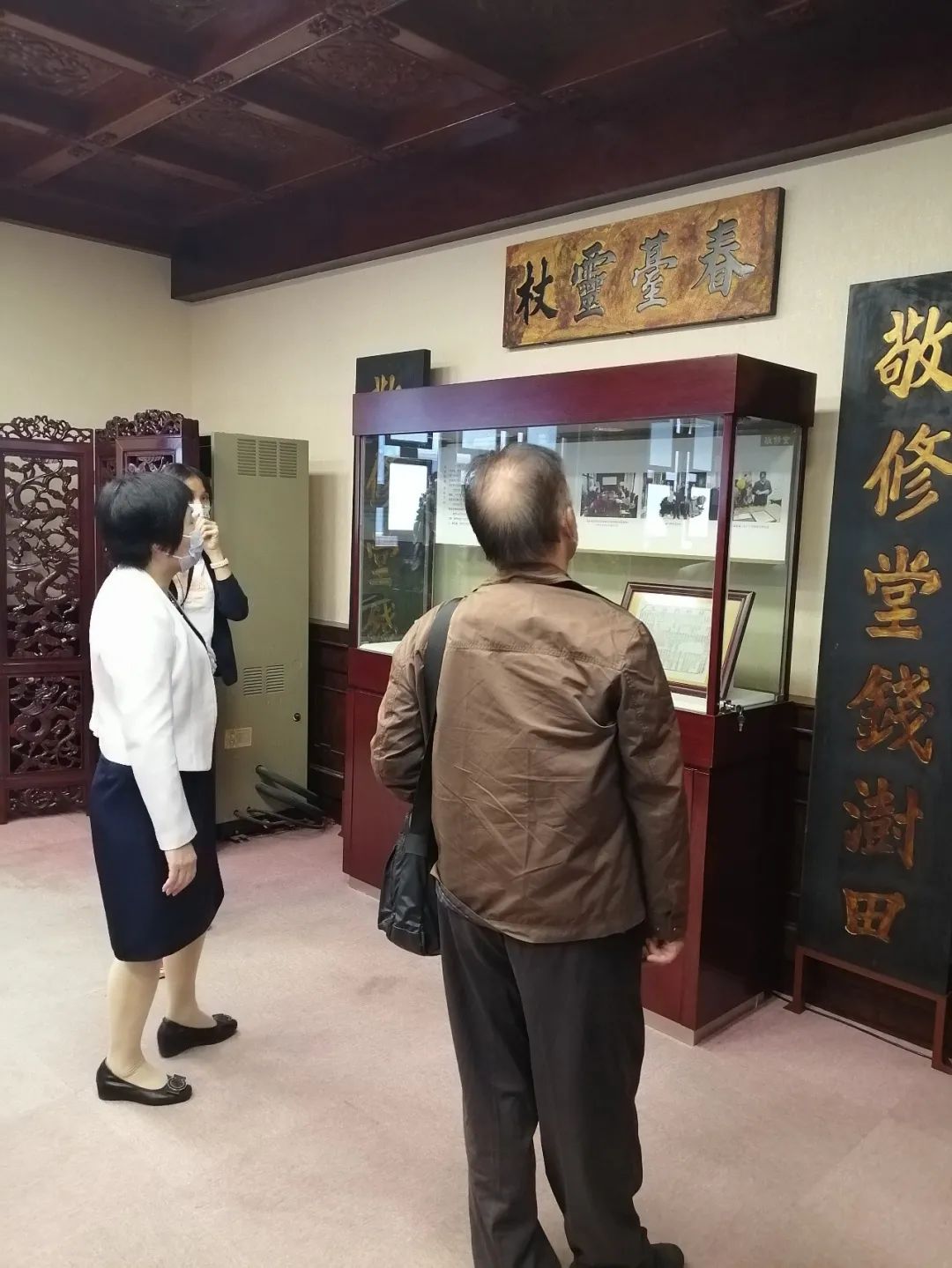 在公司领导的带领下,学院一行人先后参观了公司的方圆阁、澍田广场、检测车间、实验室等。在参观过程中,公司讲解员向学院一行人详细讲解了公司的历史起源、创始人钱澍田的故事,并重点参观了来自故宫的四件仿文物“敬修堂妇科白凤丸”、“敬修堂妇科白凤丸仿单”、“敬修堂㠌螺钿紫金锭佩”、“敬修堂十种药说”,深刻感受到了敬修堂公司231年的历史底蕴,以及对传统中药行业的坚持和追求。随后,温院长与彭副总、黄总监共同进行了“校企合作人才培养基地”的揭牌仪式,正式宣告双方建立校企合作友好关系。