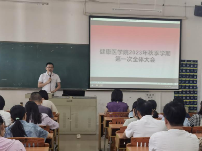 2023年9月21日,健康医学院在博学楼B502召开全体教职工大会。本次会议由健康医学院院长张健泓主持,参会人员包括党总支副书记黄泽栋、院长助理叶雪兰、周伟刚以及全体健康医学院教职工。