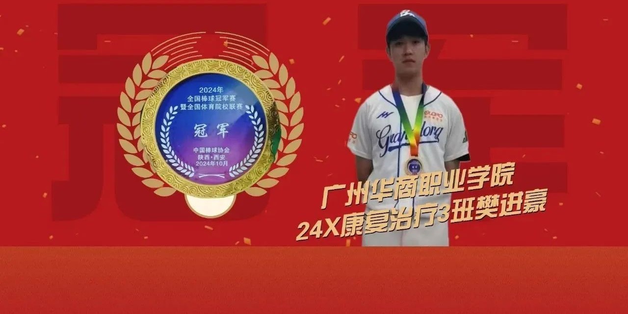 10月19日-27日2024年全国棒球冠军赛暨全国体育院校联赛在陕西西安举行来自健康医学院24X康复治疗3班的樊进豪凭借着出色的表现助力所在队伍(广东队)荣获全国冠军为健康...