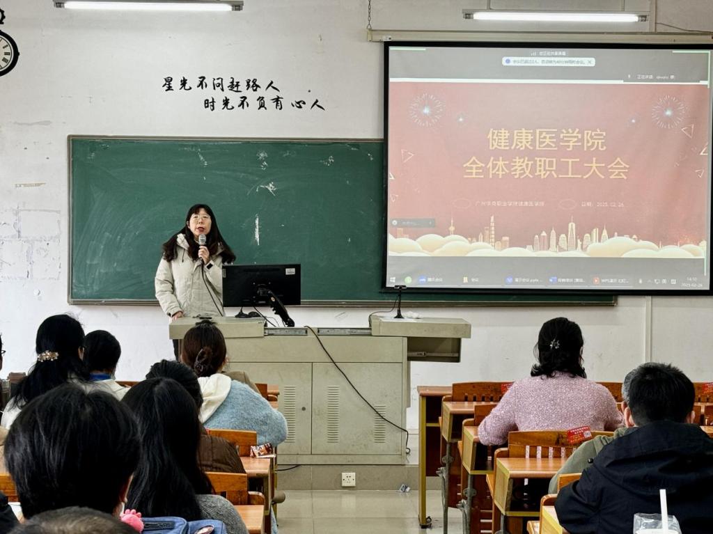 2025年2月26日下午14:00,健康医学院在博学楼B506(广州校区)、文417(江门校区)召开全体教职工会议。学院管理班子及全体教师参加会议。会议围绕学习廖榕就董事长及卢...