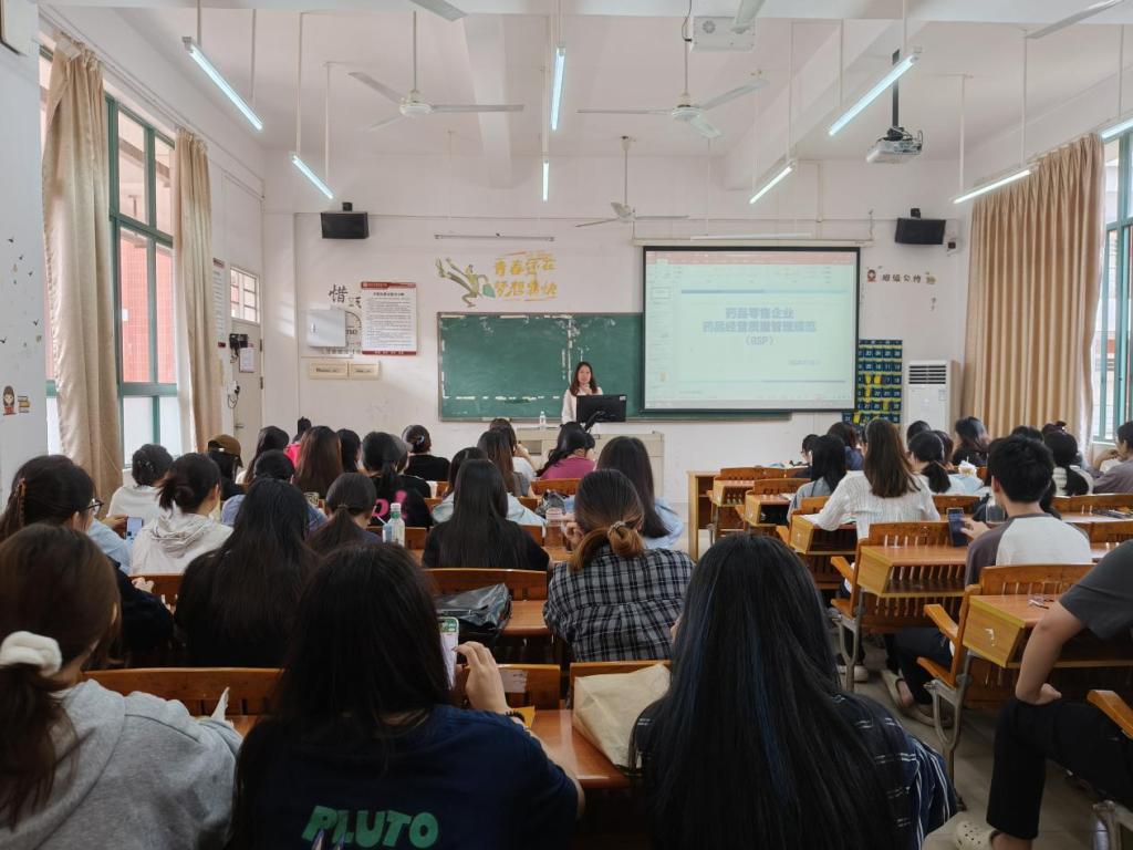 坚持岗位需求为导向,实现理论知识与操作技能的无缝对接,助力学生就业,2025年10月29日,健康医学院特邀广州绿色医药集团有限公司副总经理宋文凤为23药学1班学生举办《...
