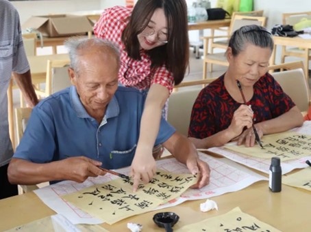 大手小手一起牵师生同心健康行老有所学 墨香千里健康医学院“医行荔湖 同心逐梦”社会实践队与荔湖街社工站于7月14日上午,开展了第四场“老有所学 墨香千里”长者书法...