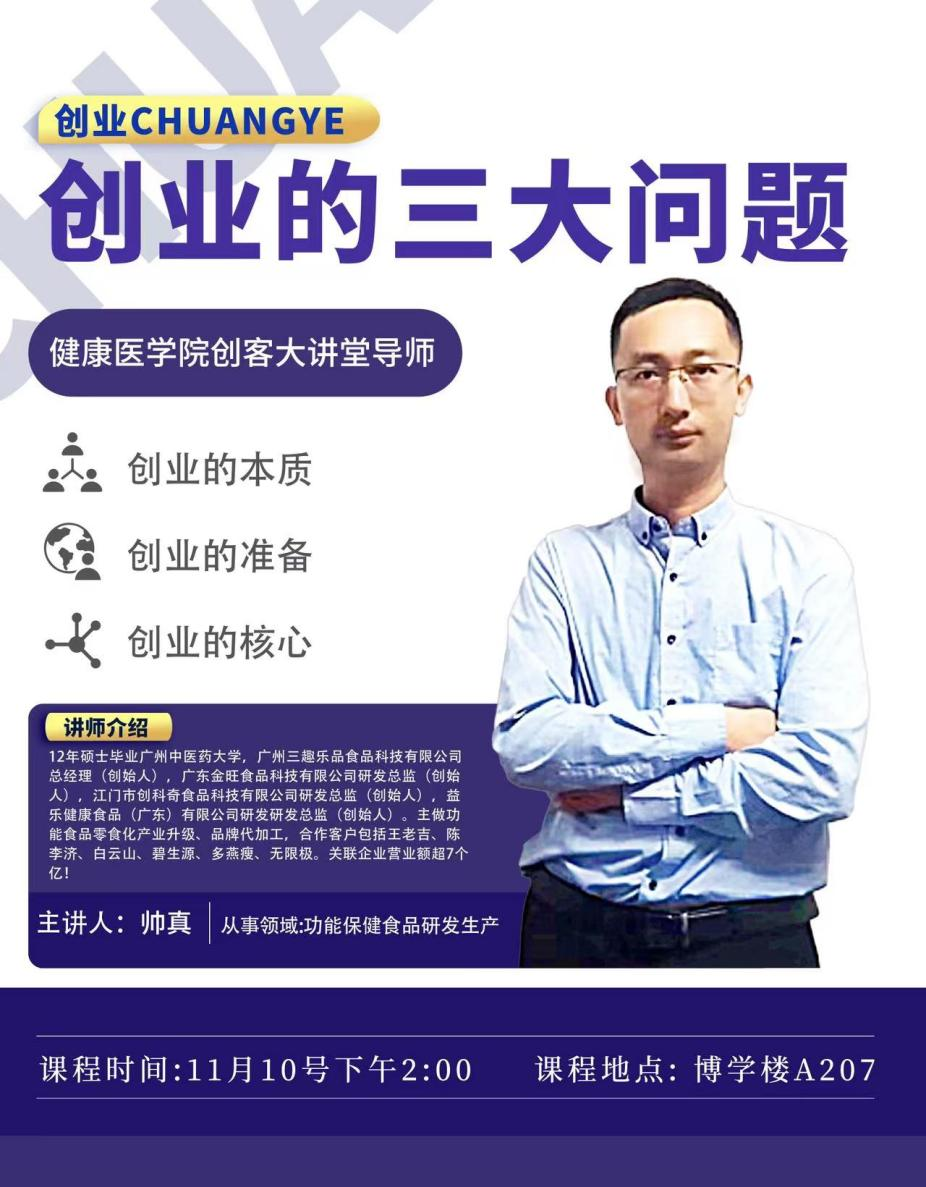 为进一步激发大学生创新创业热情,促进大学生创新思维的培养,帮助大家了解和掌握创新创业的前沿动态。我院将举行创客大讲堂活动,此次讲座邀请了广州三趣乐品食品科技...