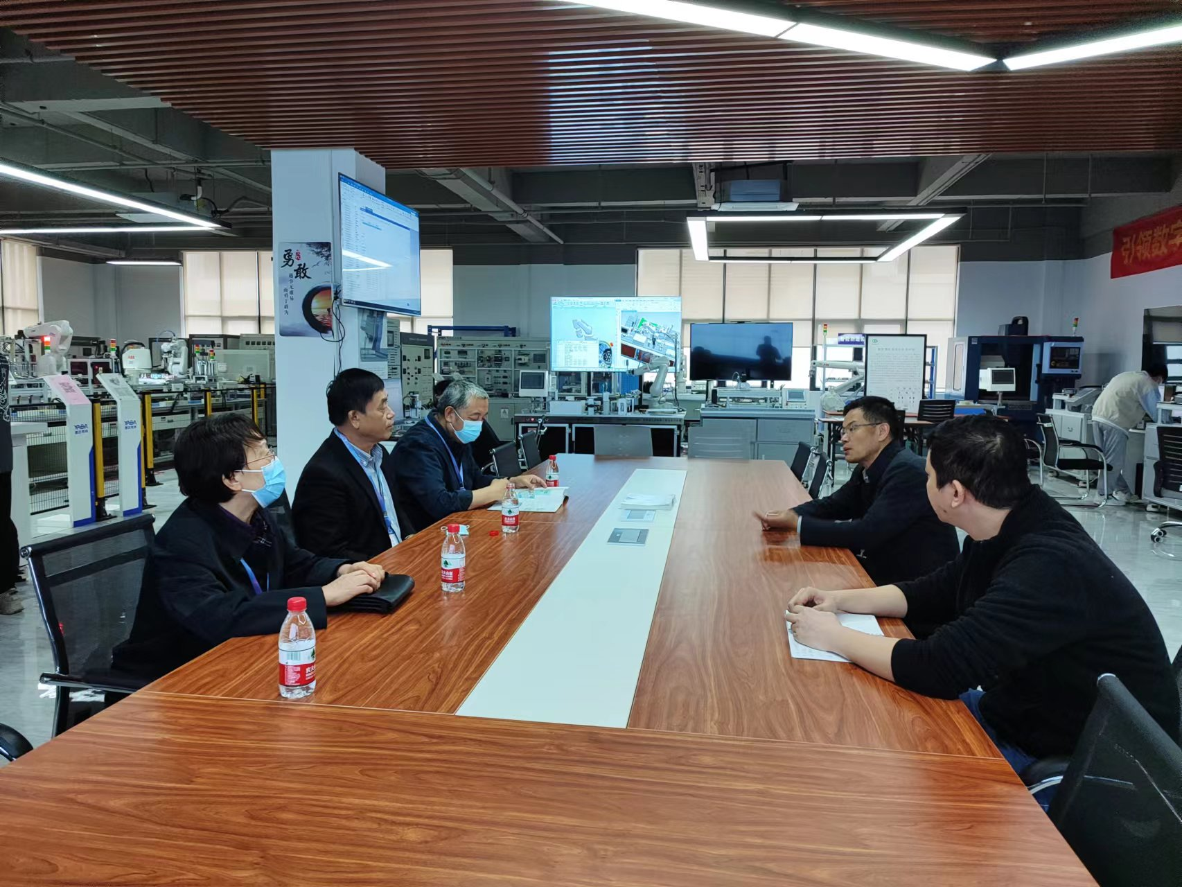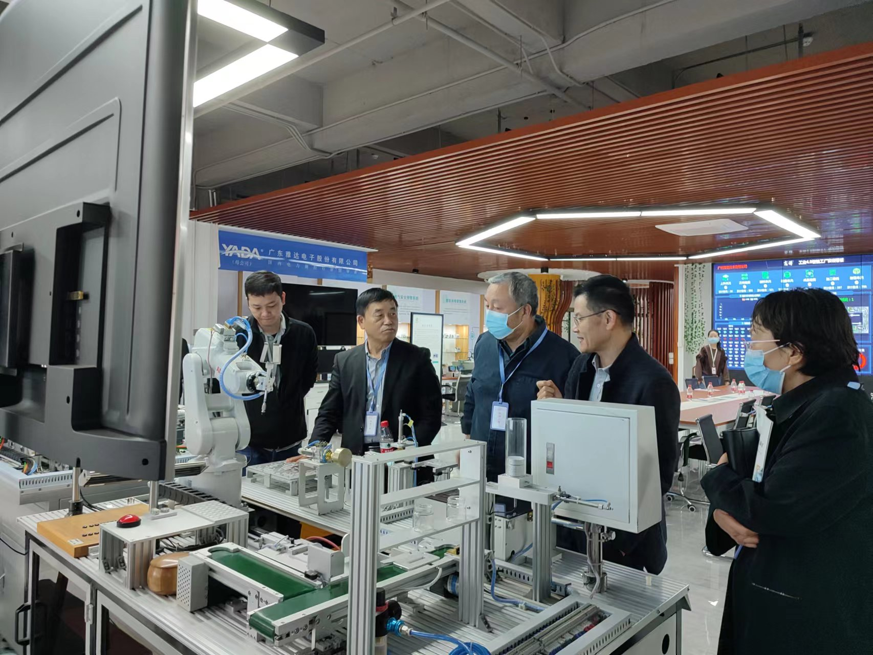广州高谱李会水向调研组介绍了公司的产品、技术、校企合作及发展目标等公司情况,调研组一行参观了智能数字产线产品展区,听取了公司技术负责人对智能数字产品演示介绍,就AI基地建设产品功能、教科研建设需求、产业学院等方面进行了交流。