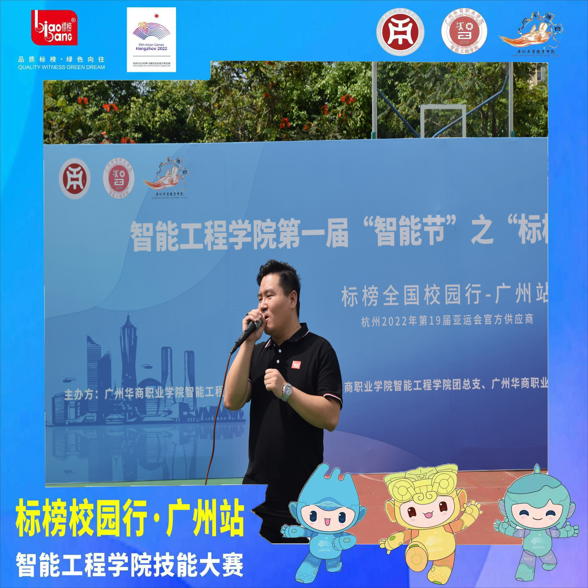 5月28日上午,“标榜杯”汽车技能大赛决赛在篮球场隆重举行。参加本次决赛的领导嘉宾有:广州华商职业学院林琨智校长、智能工程学院黄河院长、智能工程学院柳坤文副院长、佛山职业技术学院王涛主任、标榜技术服务关参记经理、标榜华南销售大区阮国赣总监以及我院各位专业指导老师。