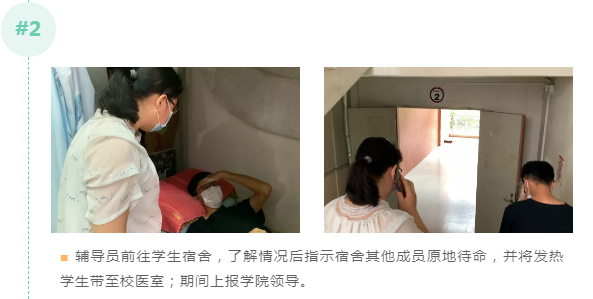 模拟演练内容为我院在宿舍发现学生发热、咳嗽、送隔离室,学校医务室进行体温筛查、运转、学校跟踪处置等过程。