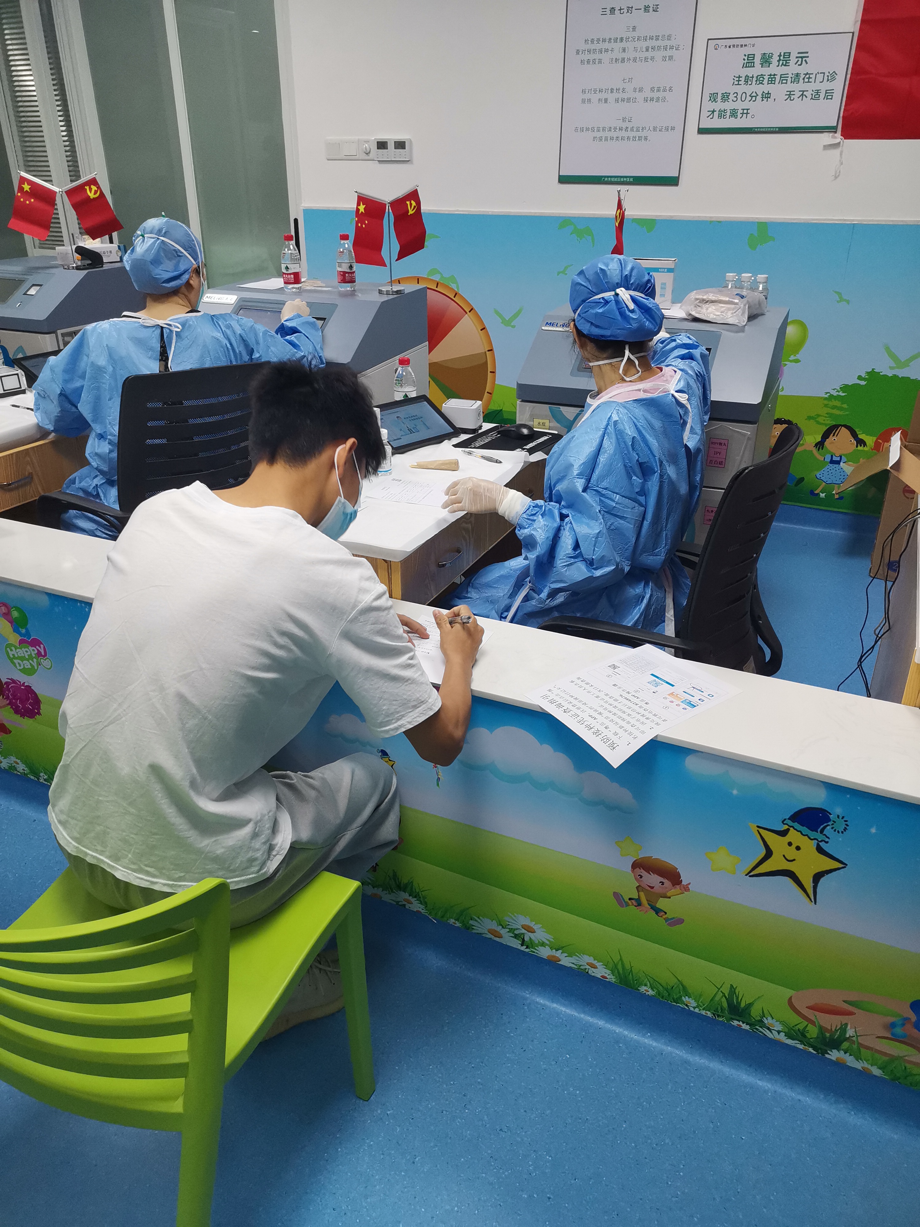 接种疫苗时,我院教师和学生有序排队,积极配合接种工作,医护人员也严格按照操作规范进行操作,并耐心地向大家交代接种后的注意事项。接种疫苗后,需留观30分钟,在确认无不良反应后,再集体归校。并在未来一周内,我院已完成接种的老师和同学们需每天上报身体情况,确保老师和学生们身体无不良反应。