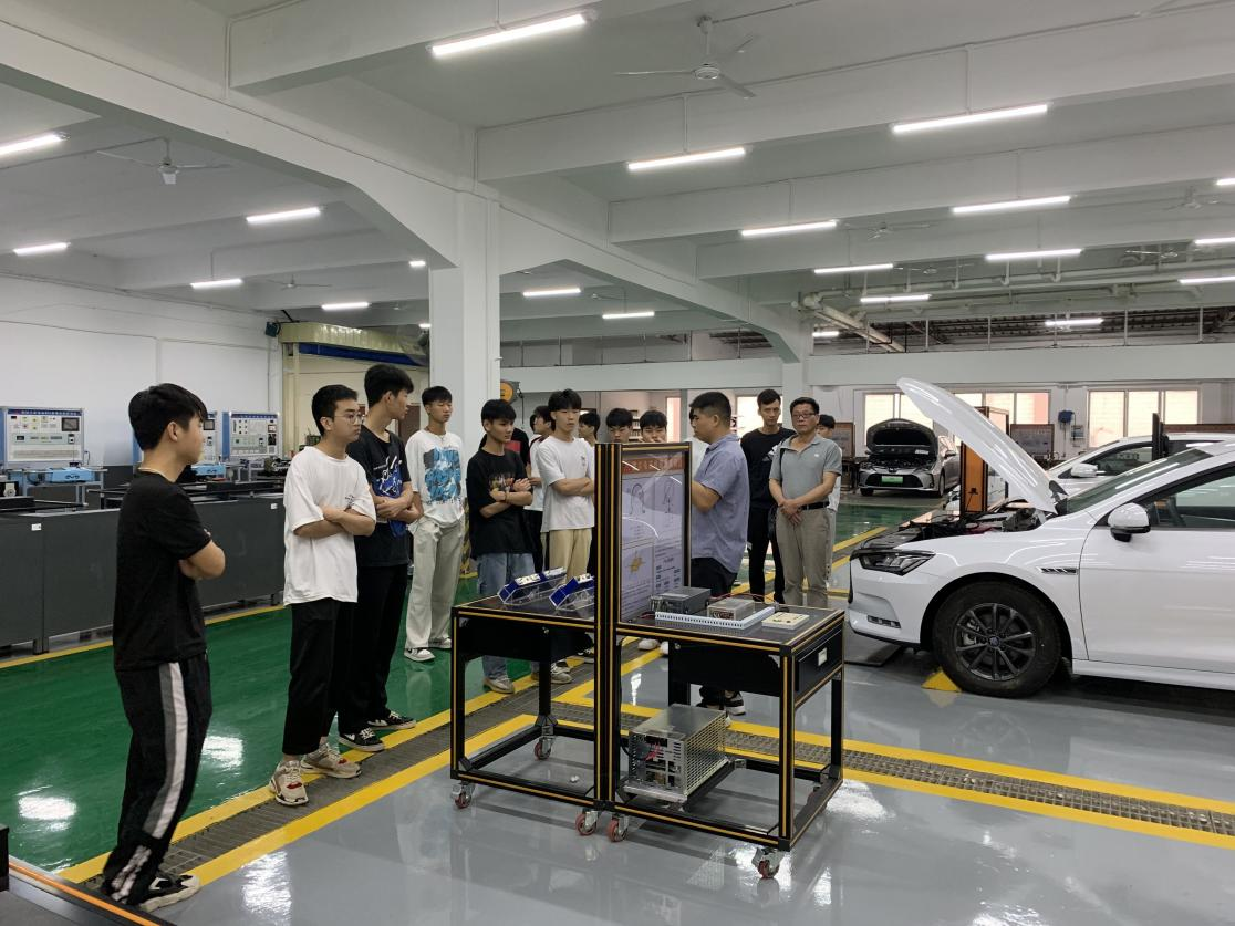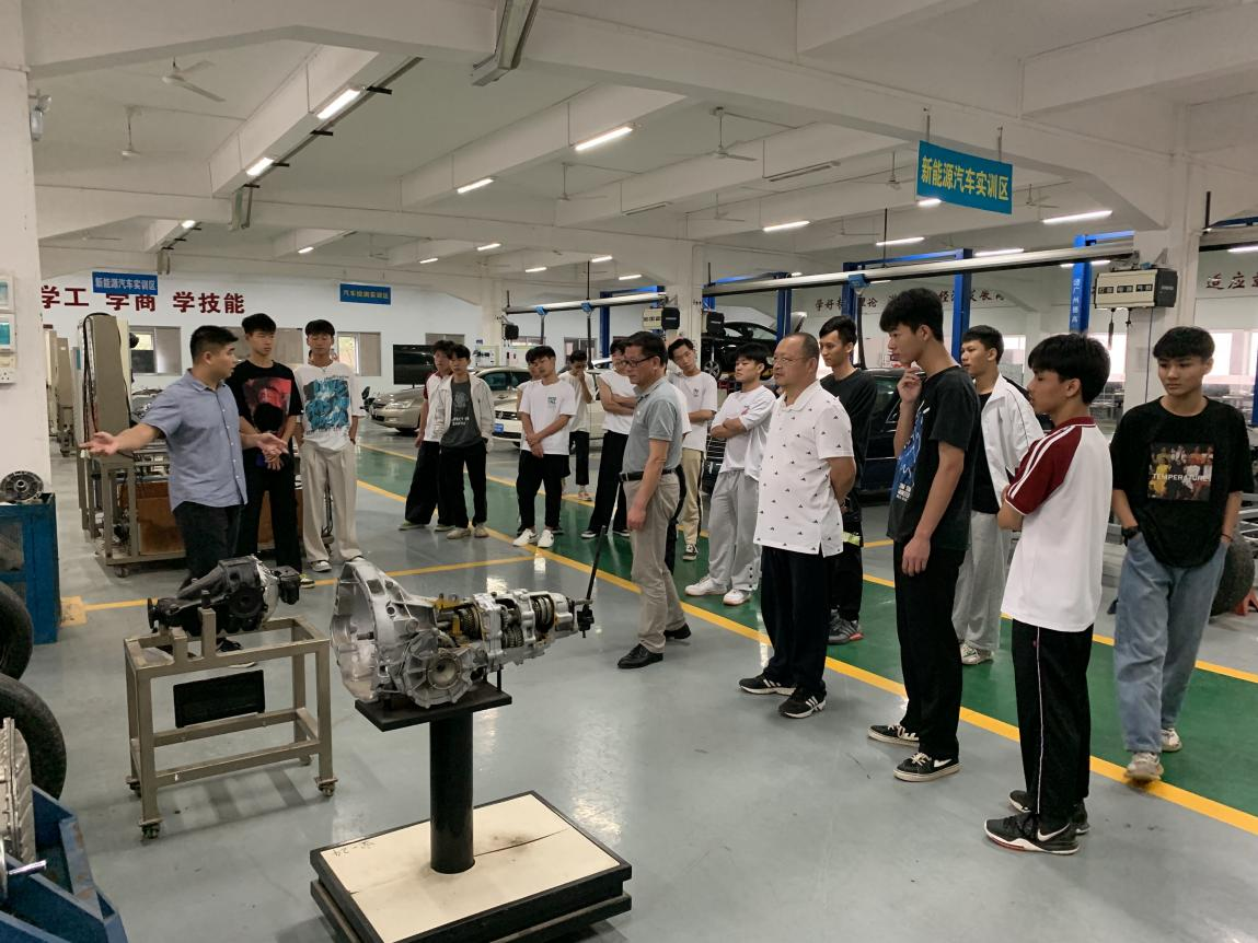 (▲广东华商技工学校机电工程科师生参观汽车实训中心)