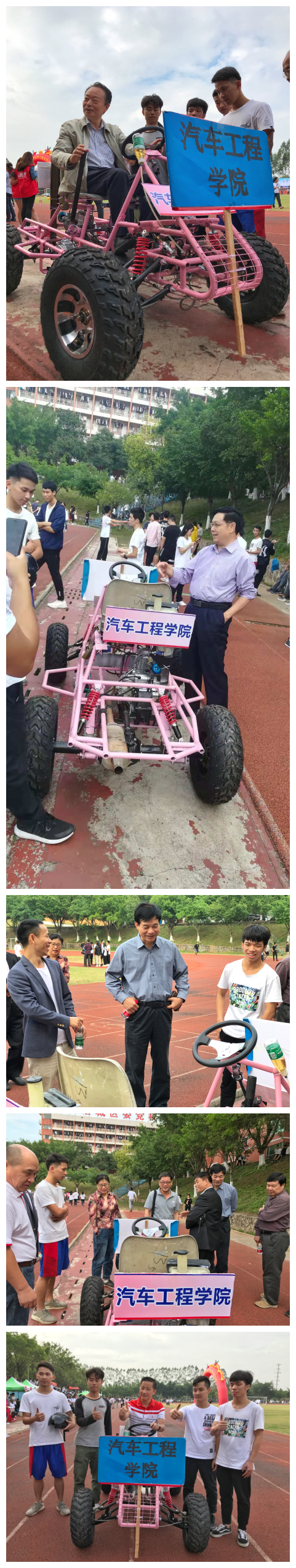 校领导赞扬同学们这种学以致用、刻苦钻研、精益求精的工匠精神。王乐夫院长、黄桂标书记等领导祝贺汽车学院师生团队能在这么短的时间里,手工打造出这辆卡丁车,并提出了一些改良的指导意见,比如可以加装外壳让车辆外形更美观,同时进一步调试与检测、优化车辆各项性能。下一步,可以考虑打造一辆体型更轻巧、使用电力驱动的新能源车。 (图/文 汽车工程学院办公室)